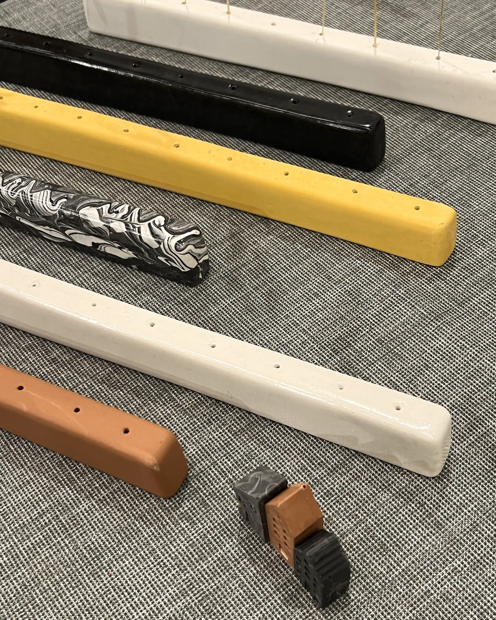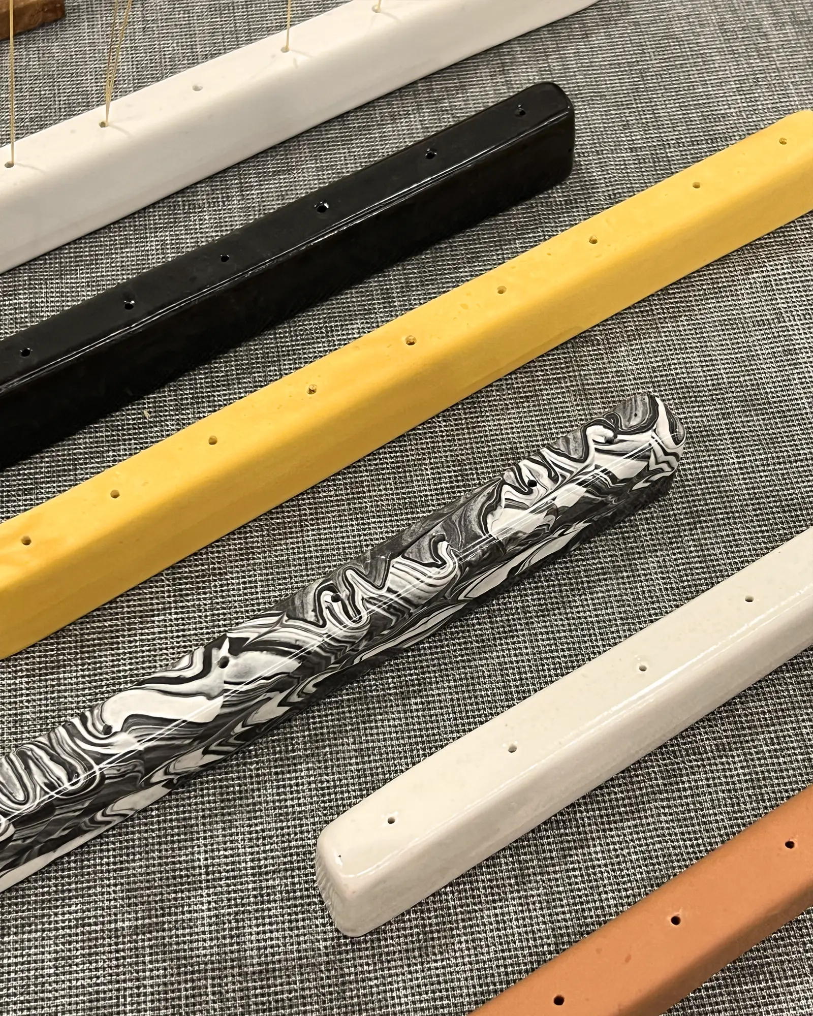 Nas peças coloridas, a tonalidade é obtida através da adição de pigmentos minerais inorgânicos.
